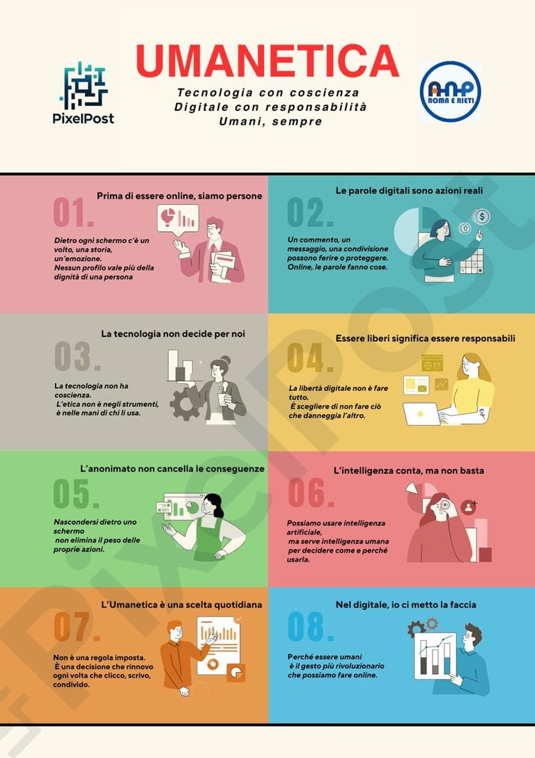 Parlare di Umanetica significa riconoscere che: dietro ogni schermo c’è una persona reale; le parole digitali sono azioni, non rumore; la tecnologia è uno strumento, non un alibi.